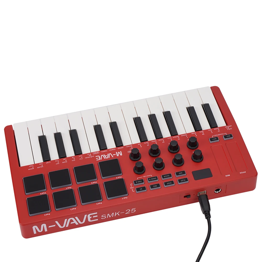 Smk-25Mini MIDI Keyboard Rechargeable 25-Key MIDI Control Keyboard Instrument Mini Portable USB Keyboard MIDI Controller